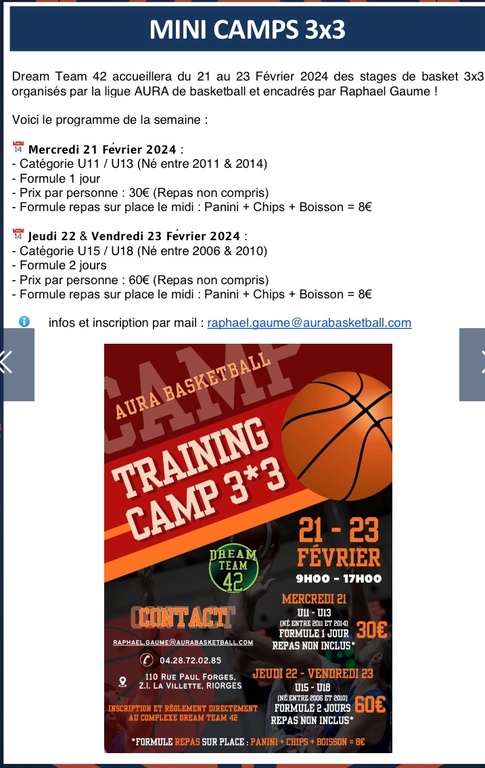 Info de la ligue basket AURA